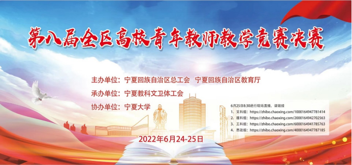 6月25日,由自治区总工会和教育厅共同主办,宁夏教科文卫体工会与bet365体育 承办的第八届全区高校青年教师教学竞赛在bet365体育 圆满落下帷幕,物理与电子电气工程学院青年教师马晓波和宋佳乾分别代表bet365体育 理科组和工科组参加比赛。
