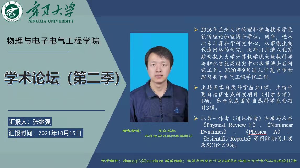 2021年10月15日下午2:30在学院206室进行“物电学术论坛”第二季,学院邀请张继强博士做学术报告。