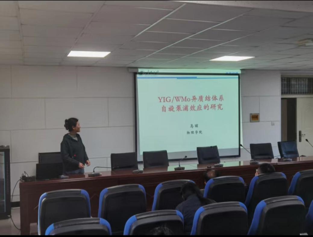 2023年11月9日下午,bet365体育 马丽和张曜勃两位老师在博远楼217为bet365体育 教师分别作“YIG/WMo异质结体系自旋泵浦效应的研究”和“高能粒子物理中最核心的观测量一散射振幅”专题报告会。
