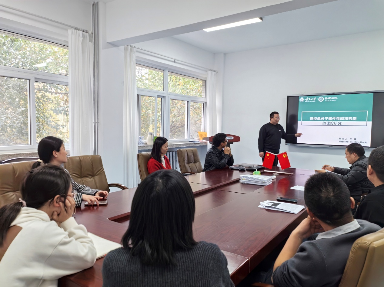 2024年10月30日下午,bet365体育 孙峰老师在博远楼306会议室为bet365体育 教师作“场控单分子器件性能和机制的理论研究”报告。