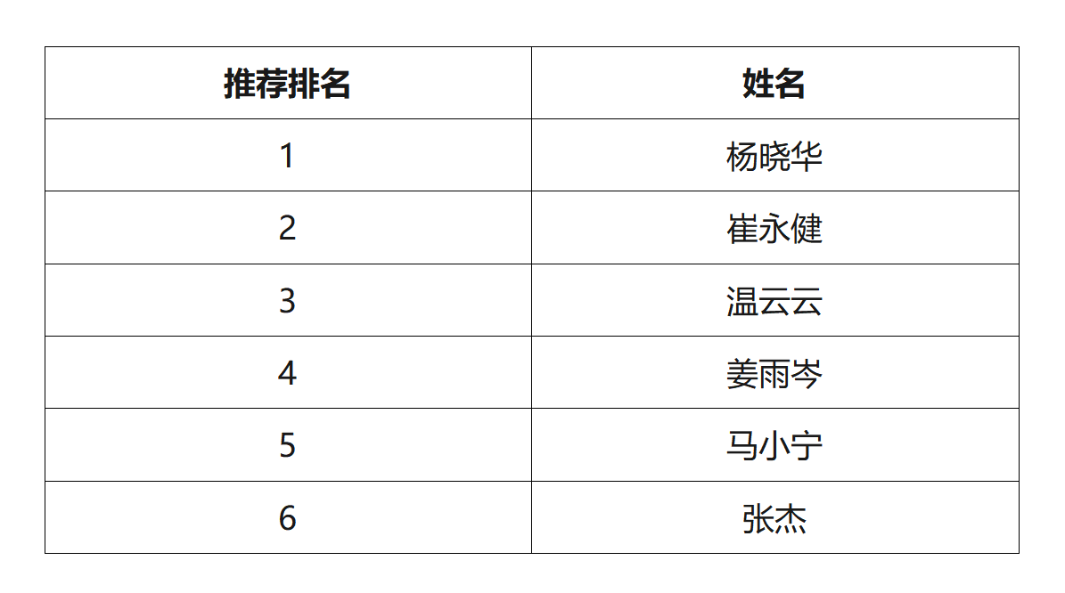 经个人申请,学院审核,依据“bet365体育 2025年研究生硕博连读选拔工作实施细则”的相关规定,对申请人进行了面试考核,考核成绩全部合格。经bet365体育 硕博连读研究生选拔工作领导小组审议,同意推荐以下6位同学为2025年硕博连读研究生候选人,按照面试成绩排名顺序推荐,上报研究生院。