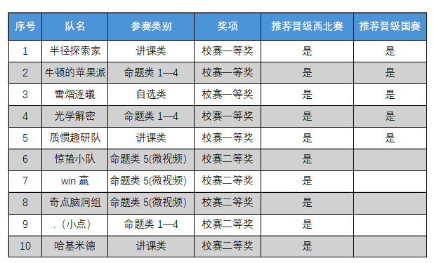 根据《关于举办第十一届全国大学生物理实验竞赛(创新)bet365体育 选拔赛的通知》要求,bet365体育 于6月5日—7月8日,在基础物理实验中心组织开展了校级选拔赛。在广大师生的热情参与下,全校共有33支团队参与了赛事,经过赛前培训、资料审查、专家评审,10支团队获得了晋级西北赛的资格,其中,5支团队获得了晋级国赛的资格。现将评审结果公示。