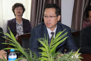 上午十点三十分,考察团一行到物理电气信息学院二楼会议室与学院领导、教师代表、“三办”主任、学生代表召开座谈会,座谈会由校党委副书记赵利宁主持。李新碗院长首先对考察团一行来物理电气信息学院表示热烈欢迎,愉快地回顾了两校对口支援十年来对物理电气信息学院带来的促进和取得的成绩,简要介绍了学院情况及学院发展的瓶颈问题,并从师资队伍建设、学科团队建设等方面介绍了下一步工作思路、规划和目标,表示愿与上海交通大学更紧密联系,更深入合作,取得更大的硕果。教师代表杨泽林教授希望两校在学科队伍建设工作上的合作向纵深发展,采取更实的思路和举措。如:“交大教师帮一帮、带一带宁大教师”;毕业于上海交通大学的王金梅教授表达对母校培养的感谢,简要介绍了自己的工作情况。青年教师代表肖斌博士主要从青年教师培养、学术资源困难方面希望能够得到更广泛的合作与交流。上海交通大学副校长黄震就人才培养“四要素”、学科建设、服务地方等方面阐述了两校对口支援、合作交流取得的成绩,合作的潜力,发展的积极作用。张杰校长谈到“人才”是学院发展的关键,学院抓“国家自然科学基金”是提高能力的有效措施,回顾交大科研历程,也是从量变到质变的过程,宁大同样也要经过这个过程。赵利宁副书记对上海交通大学各位领导莅临bet365体育 考察指导工作表示热烈的欢迎,对上海交通大学十年来对bet365体育 给予的支持与帮助表示诚挚的感谢。最后,赵书记指出:两校对口支援十年来,在学科建设和人才培养方面取得了卓有成效的成果,双方合作取得了有目共睹的成绩,使bet365体育 综合实力显著提升,希望在博士生培养学位点上,在上海交通大学的帮助下能取得更大的突破,在今后的对口支援、合作交流中拓宽更广领域、取得更大成就!