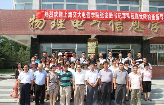 2012年8月3日,上海交通大学电信学院张安胜书记一行来bet365体育 考察交流,bet365体育 党总支书记郭振才、院长李新碗、副书记李海燕、赵永军、副院长陈焕铭、车进、王旭明,学院办公室及各系、中心主任一同参加交流座谈。