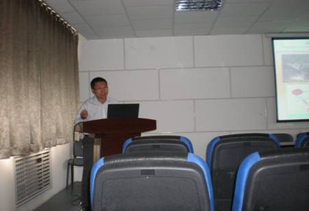 接下来马治博士率先为大家做了学术沙龙的首个报告,题目为“磁性微米纳米材料的制备及其高频磁性研究”。马治博士的报告首先从2010年诺贝尔物理学奖(石墨烯的研究)谈起,指出低维材料研究在现代凝聚态物理学中占有重要的地位。接着从现代军事需要出发,指出当前国内外对隐身材料研究的迫切性和现实性,以及当前在该领域的研究热点问题。最后,他详细地介绍了自己在该方向开展的一系列研究工作,包括微波吸收关键问题的提出、实验设计的思想、材料选择的依据、磁性微米纳米材料的形貌控制方法、低维材料的微波介电性和高频磁性、各类材料的微波吸收性能等。报告紧紧围绕微波吸收阻抗匹配的复数超越方程展开,以实数化的阻抗匹配度新概念的提出和蜂窝状吸波材料结构的探索设计做了总结。