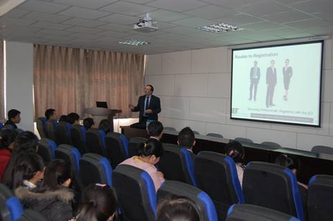2012年10月21日下午,英国工程技术学会皇家注册工程师、资深会士,现任IET职业发展部门经理Dick Bacon先生在物理电气信息学院学术报告厅217室,为bet365体育 相关