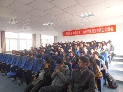 2012年11月8日下午3:00,“相识相知、水墨共享”研究生师生交流及教学座谈会在物理电气信息学院217学术报告厅如约举行。此次座谈会有两个内容:1、研究生师生学术经验交流。2、研究生教学座谈。出席本次活动主要有物电学院院长李新碗教授,副院长王旭明教授,物电学院党总支副书记赵永军,学生工作办公室主任聂义民,教学科研办公室主任马丽,教师代表、高年级学生代表以及2012级全体研究生新生。