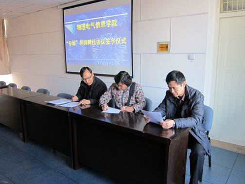 会议第一项进行了专业硕士导师聘任协议签字仪式,王旭明院长代表学院与李世芳、胡钢墩、汤秀芬、赵红生等15位院聘研究生导师签署了聘任协议。聘任协议明确规定了各位导师的职责,为更好的教育、指导研究生提供了重要依据。此次聘任具有副教授以上职称或博士学位的教师为专业硕士导师为学校首例,它打破了硕士导师资格认证框架,提倡胜任研究生指导工作的教师担任导师,采用聘任的方式建立硕士培养机制。