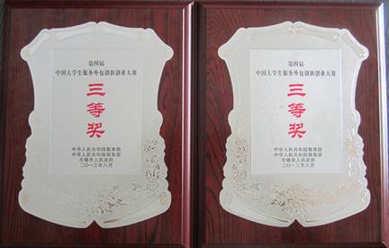 8月20-21日,在江苏省无锡市太湖国际博览中心举行“第四届中国大学生服务外包创新创业大赛”(简称服创大赛)决赛中, bet365体育 张然、未宏龙(教育学院)、张忠旺、潘丽静、周谋斌同学组成的“贺兰之翼”团队的参赛作品《惠好制药有限公司移动应用系统(Android版)》和史崇升、吴佳、谭洪毅、王立新、杨薇同学组成的“塞上五宝”团队的参赛作品《中小学数学实验室系统》双双荣获三等奖,两队指导老师均由汤全武副教授担任。