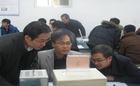 2013年11月12日下午,基础物理实验中心在308实验室进行期中教学检查观摩课活动,参加的人员有学院的车 进书记、王旭明副院长、任克亮副院长、赵永军副书记以及中心的全体教师。本次观摩课的实验项目是《弗兰克-赫兹》,主讲教师是我中心的杨秉雄教授。观摩课结束后,听课老师在中心会议室就如何进一步提高实验课程教学质量的问题进行了讨论。此次公开课为中心教师共同提高教学质量提供了很好的教研机会,同时也丰富了实验教学研究活动的内容。