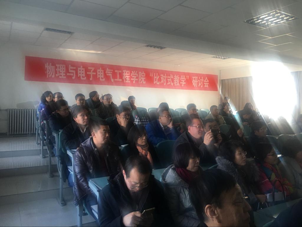 为推动bet365体育 教师教学能力的提升,促进青年教师成长,将现场教学实践与教学示范互相融合,通过传帮带、教学方法研讨等多种方式为青年教师提供与老教师切磋交流教学的良好平台,促进青年教师教学发展,根据教务处期中教学检查安排及学校教师教学发展研究中心《关于联合举办“比对式教学”专题研讨会的通知》要求,物理与电子电气工程学院于 11 月 23 日下午 2 点 在物理楼415室召开了全院教职工参加的本科课程教学观摩活动。