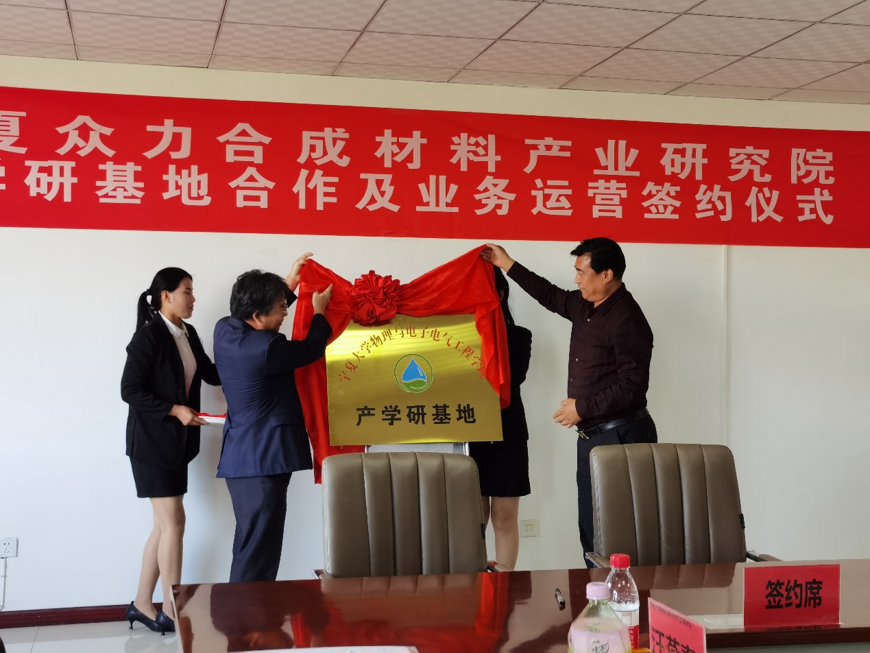 为了充分发挥高校的创新能力、科研水平及人才团队的优势,有效利用地方组织和企业的资源优势,通过高校的科研创新提升企业的技术水平,促进科研成果转化为具有经济效益的生产力,更好的为地方经济及行业产业发展服务,满足地方经济及行业产业的发展需求。2020年9月16日下午,bet365体育 物理与电子电气工程学院陈焕铭副院长一行七人赴石嘴山市科技园与宁夏众力合成材料产业研究院开展合作洽谈,签订战略合作协议。bet365体育 陈焕铭副院长和宁夏凌云集团有限公司执行董事王振分别代表双方为 “bet365体育 物理与电子电气工程学院产学研基地”揭牌。