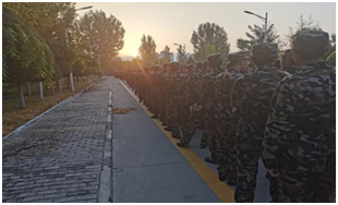 “红军不怕远征难,万水千山只等闲。”大家用精神抖擞的面貌迎接拉练。队伍虽长,同学们仍保持着整齐划一的步伐,不时小跑补全队伍中的空档。同学们拿着水,补充着能量,匍匐前进,穿越毒区,一路小跑,仿佛体验了“黄沙百战穿金甲,不破楼兰终不换”的执着信念。终于,经历了重重的阻碍,完成了长达十公里的拉练。领悟了“更喜岷山千里雪,三军过后尽开颜。”的喜悦。