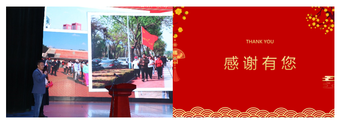 最后,场馆服务中心主任和润老师和原物电学院院长、退休教师代表张磬兰教授发表讲话。和润主任表达了与老同事相逢的激动心情,讲述了曾经与退休教师之间美好的往事。同时也表达了对我们的热烈欢迎,并殷切希望教师们能常来场馆锻炼健身。张磬兰教授妙语连珠,发表了“5G”感言:衷心“感谢”学院邀请退休教师参加本次活动,对精心策划的荣退仪式深表“感动”,对学院取得骄人成绩由衷“感慨”,深切“感恩”物电学院优良传统的经久传承,最后用“干杯”为我物电喝彩,为我物电祝福……随后,物电学院的全家福让美好、和谐与温情永远定格……