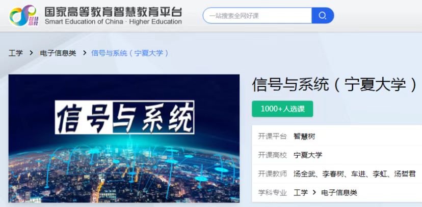 bet365体育 国家级一流本科课程“信号与系统”于近日入选国家高等教育智慧教育平台,成为首批上线的2万门课程之一。