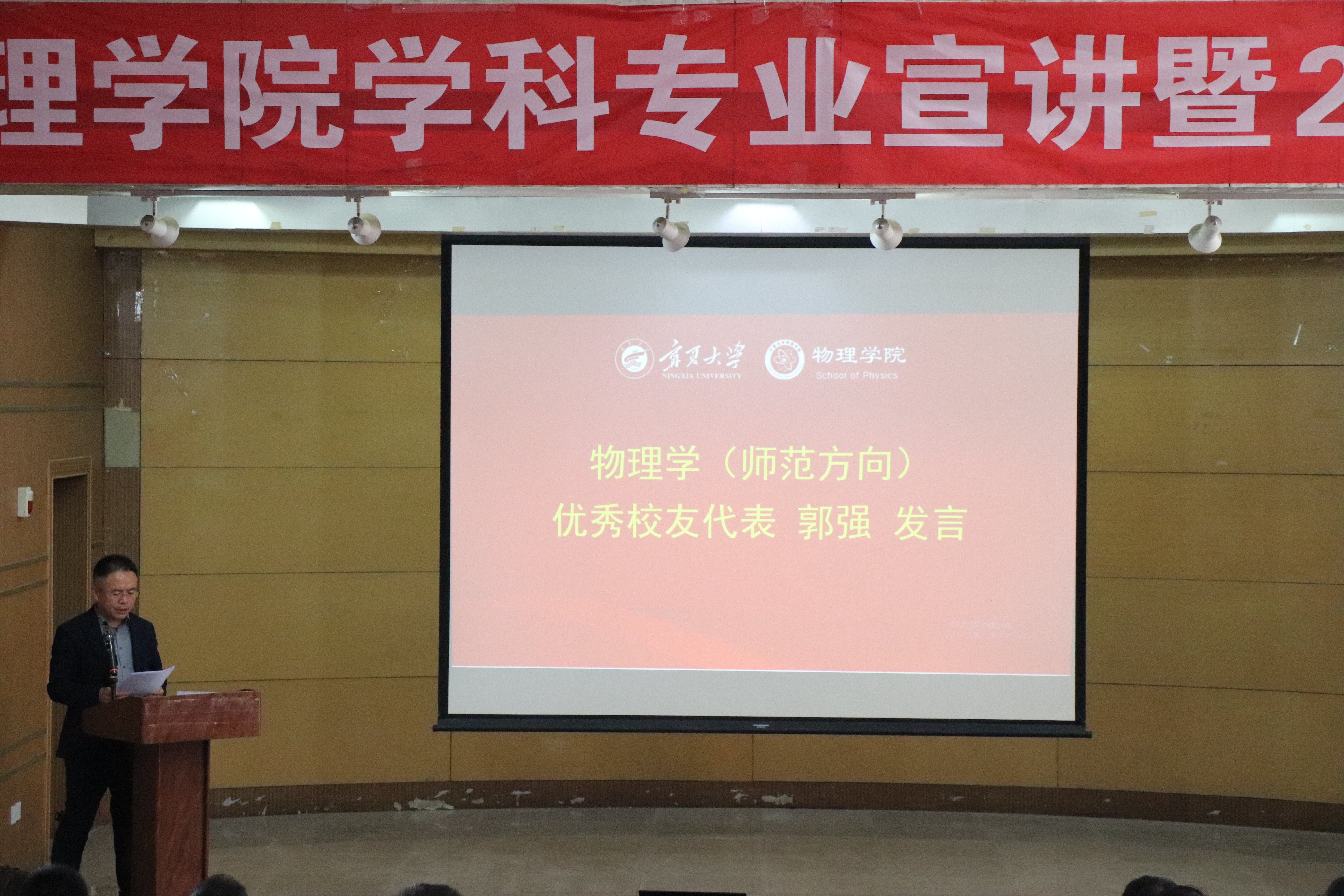 物理学(师范方向)优秀校友代表、宁夏银川一中党委委员、副校长郭强,物理学(基础拔尖)优秀校友代表、中国科学院理论物理研究所助理研究员谢琼、物理学(材料物理)优秀校友代表、广东一纳科技有限公司总经理王建兴受邀发言。他们通过分享自身的成长经历,展现他们在各行各业取得的业绩,激励和引导每一位bet365体育 学子传承物理人的精神,在奋斗中练就过硬本领、勇于创新创造、锤炼高尚品格、追逐青春理想,以青春奋斗之我,成就精彩人生。