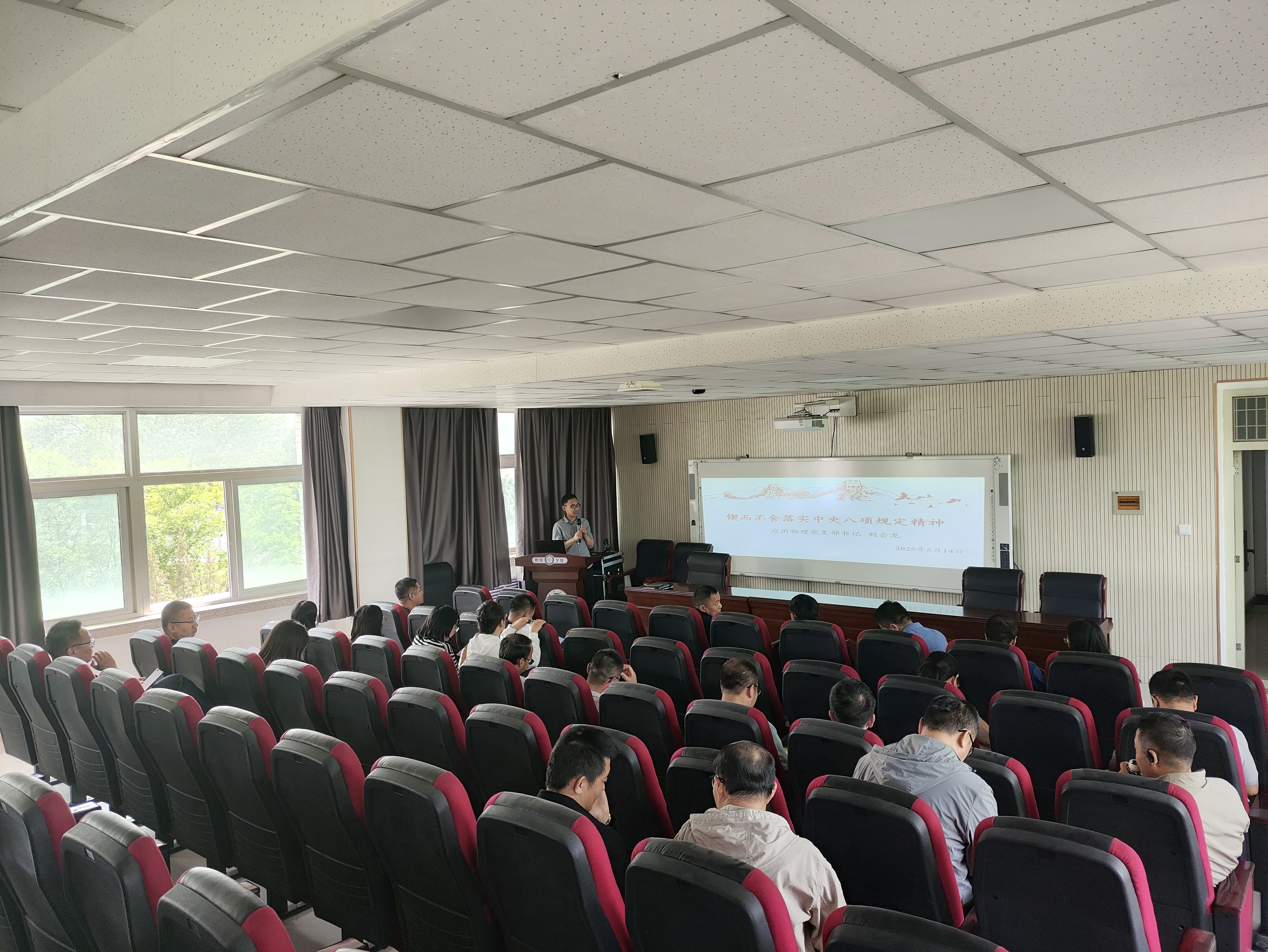 为深入贯彻落实全面从严治党要求,进一步增强全院教师的纪律意识和规矩意识,2025年5月14日,bet365体育 在博远楼321会议室召开全院教师大会,学院应用物理教工党支部书记刘会龙以“锲而不舍落实中央八项规定精神”为主题,为全体党员教师上了一堂深刻的党课。