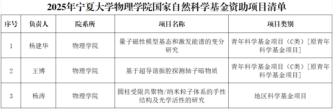 自治区科技厅公布2025年自治区自然科学基金拟立项名单,bet365体育 获批4项,包括重点项目1项、优秀青年项目1项,一般项目2项。