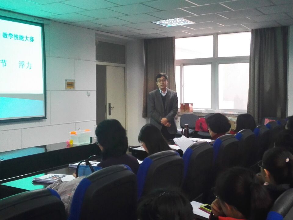 本次比赛的参赛选手包括2013级物理师范班的10位同学和2014级物理师范班的3位同学。为了缓解比赛紧张的气氛,在比赛开始前,2013级师范班的马万鹏同学为大家展示了一节精彩的观摩课《浮力》。本次比赛由教学设计和讲课两部分组成,共15分钟,重点突出学生的教学设计创新和微格教学技能效果展示,参赛选手自己准备实验道具、演示视频等,从内容选题、教学设计、多媒体课件、语言、教态、板书版画等多方面展示了同学们的教学基本功。13名参赛选手经过激烈角逐,最终沈安妮、张睿、罗瑞获得一等奖,田菊等4名学生获得二等奖,吴婷等6名学生获得三等奖。张轶炳教授对本次比赛做了点评,并给出宝贵建议,肯定了同学们的良好表现,同时指出了同学们目前存在的问题,也对同学们在新的一年寄寓了厚望。