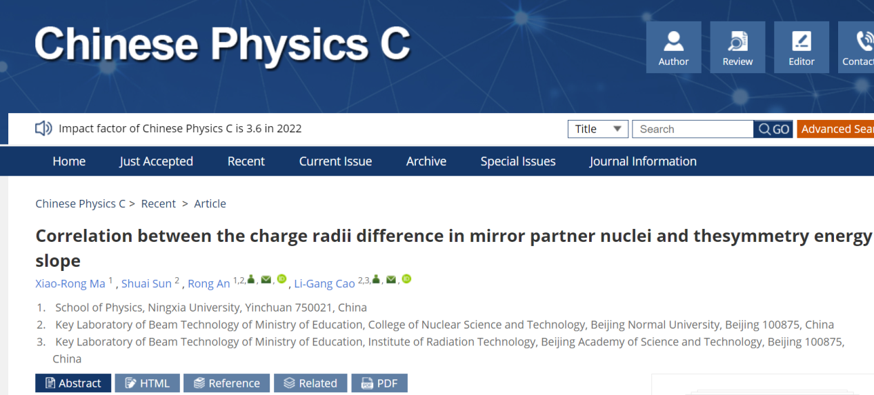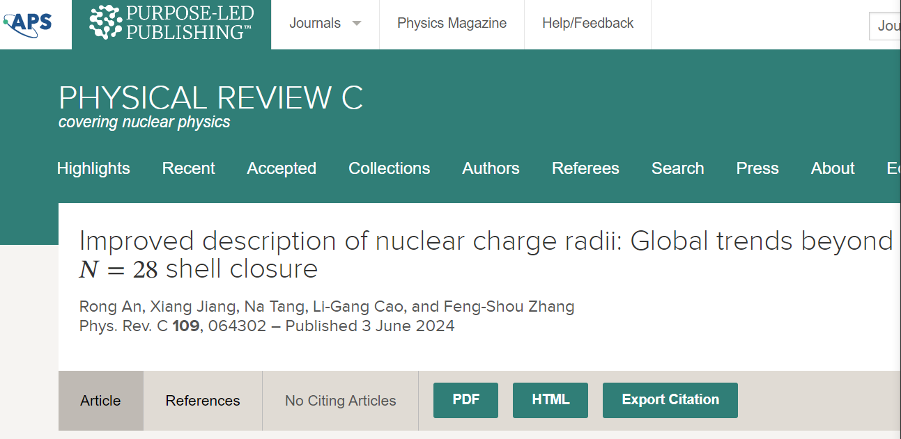 bet365体育 安荣博士和唐娜博士在《Physical Review C》核物理专业期刊发表高水平论文