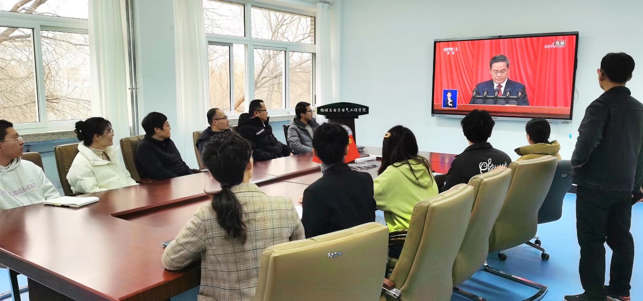 第十四届全国人民代表大会第二次会议和全国政协十四届二次会议分别于2024年3月5日和3月4日在北京开幕,bet365体育 基础物理教工党支部和应用物理党支部结合工作实际,联合组织党员师生收听收看大会实况,积极开展学习交流讨论,深刻学习领会两会精神。回顾过去一年,我国克服了各种困难,取得了多项重大成就,全面建设社会主义现代化国家迈出坚实步伐,这是习近平新时代中国特色社会主义思想科学指引的结果,是全党全军全国各族人民团结奋斗的结果。政府工作报告简洁务实、内容丰富,让人对中国经济社会高质量发展、全力推进中国式现代化充满信心。作为高校党员教师,我们将认真学习贯彻两会精神,在思想上政治上行动上同以习近平同志为核心的党中央保持高度一致,坚持为党育人、为国育才的初心使命,扎根西部,以赤诚、奉献、仁爱的积极态度,上好每一堂课、教好每一名学生,为党和国家的教育事业作出应有贡献