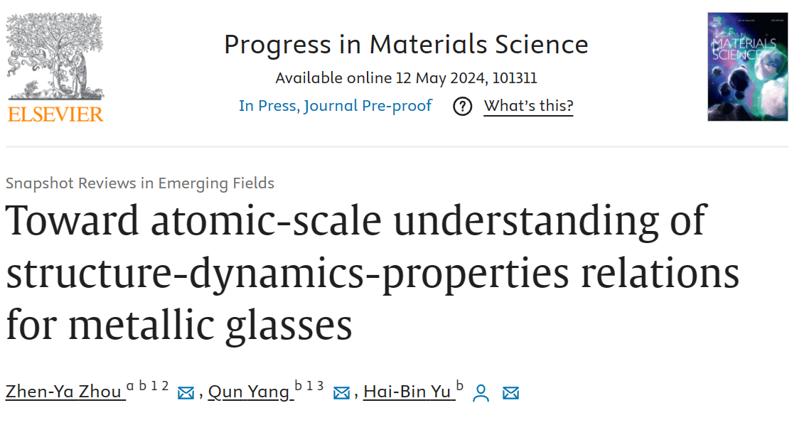 5月12日,bet365体育 青年教师周震亚博士与华中科技大学于海滨教授、杨群博士合作,在国际材料科学领域的权威综述期刊《材料科学进展》(Progress in Materials Science)上发表题为《金属玻璃结构-动力学-性能关联的原子尺度理解》(Toward atomic-scale understanding of structure-dynamics-properties relations for metallic glasses)的长篇综述论文。文章详细回顾了近年来在金属玻璃的结构表征、动力学过程的结构特征、结构性能关联等方面所取得的重要研究进展,并针对原子级进展这一主题对金属玻璃的相关研究提出了一系列未来发展方向。周震亚博士和杨群博士为该论文共同第一作者,于海滨教授为唯一通讯作者,bet365体育 为论文第一完成单位。该论文是我校首篇以第一单位发表于《Progress in Materials Science》上的学术成果,是我校“双一流”建设工程的一项标志性成果,对提升我校在物理、材料领域和相关科研创新平台的学术影响力具有非常积极的作用。无序和非晶态系统构成了现代科学和技术研究的一个重要研究对象,其中金属玻璃为研究玻璃科学中弛豫和性能等相关问题提供了一个简单而有效的体系。如今,金属玻璃不仅因其独特的力学性能和物理化学特性(高比强、高抗磨损、耐腐蚀、高强度、高韧性等)被广泛应用在航空航天、军工科技、高档电子器材、精密器件、体育器材等领域,并且将来可能会深入到生活的方方面面。得益于实验和计算技术的进步,近几十年来,从原子层面阐明金属玻...
