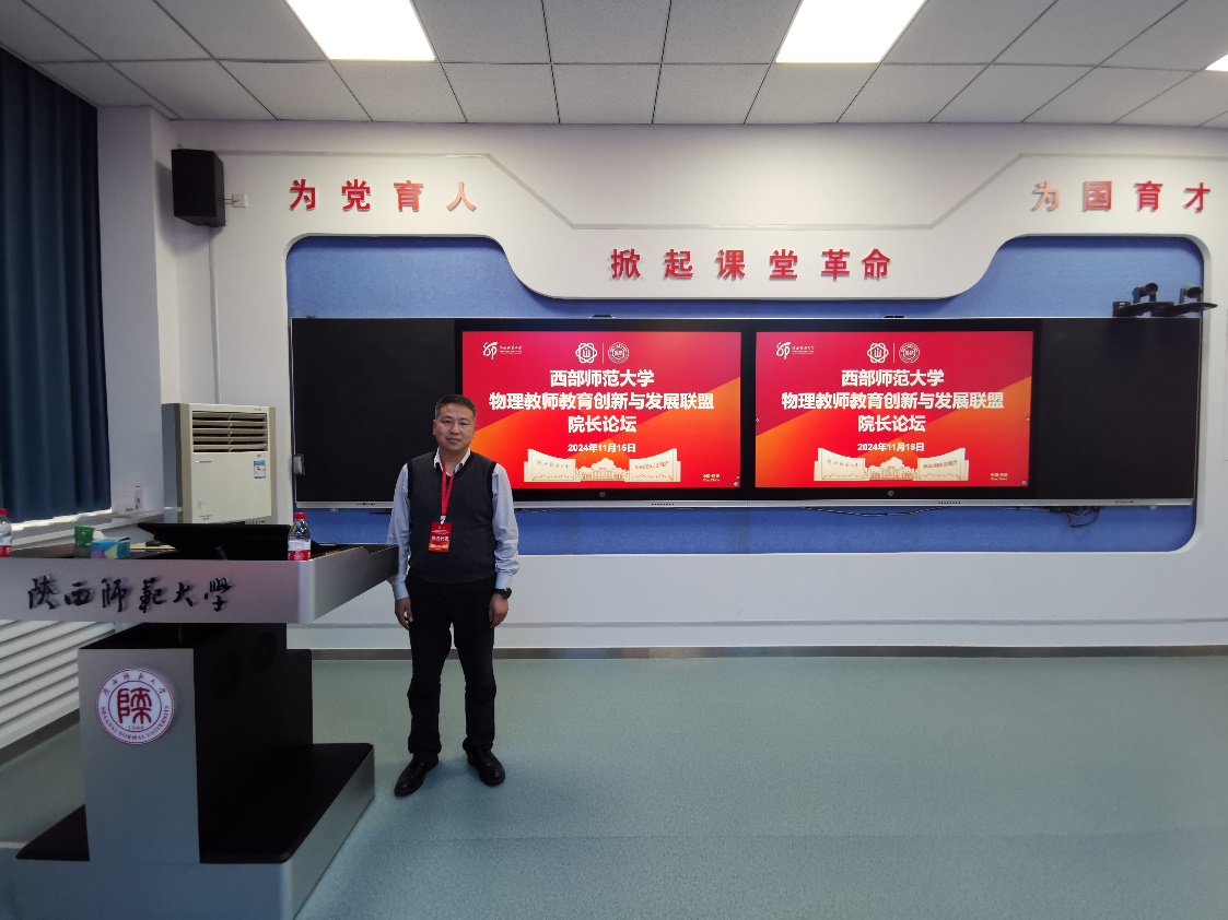 2024年11月15-17日,由教育部西部师范大学教师教育创新与发展联盟、陕西师范大学教师教育处、陕西师范大学教务处主办,陕西师范大学物理学与信息技术学院承办的西部师范大学物理教师教育创新与发展联盟成立大会暨物理教学改革与教材建设研讨会在陕西师范大学成功召开,bet365体育 受邀参加。在院长论坛上,高永伟代表学院与参会的各师范大学学院院长,在人才培养、课程、教材与专业建设等方面开展深入交流。尤其是陕西师范大学物理学与信息技术学院在本科教学成果方面的深厚积累,为bet365体育 本科人才培养提供了重要借鉴,也为进一步培育本科教学成果提供了重要指导。在教学改革与教材建设研讨会上,高永伟对我校物理学(师范)专业在教材、资源及课程建设方面的一些经验做了分享。与会代表还就西部联盟共同编写的《物理课程与教学论》教材进行了深入讨论。学院郝睿教授作为主要编委参与教材编写,本书也是高等教育出版社2025年计划正式出版的系列教材之一。会议期间学院受聘为西部师范大学物理教师教育创新与发展联盟副理事长单位。未来,学院将以此次西部师范大学物理教师教育创新与发展联盟成立为契机,借鉴陕西师范大学物理学(师范)专业成功通过教育部师范专业三级认证经验,对标师范专业三级认证标准,改善师范类人才培养软硬件条件,为早日通过师范类三级认证打基础、做铺垫