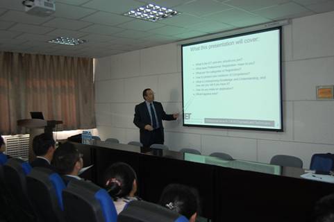 2012年10月21日下午,英国工程技术学会皇家注册工程师、资深会士,现任IET职业发展部门经理Dick Bacon先生在物理电气信息学院学术报告厅217室,为bet365体育 相关 专业的研究生和部分老师做学术报告,报告会由车进副院长...