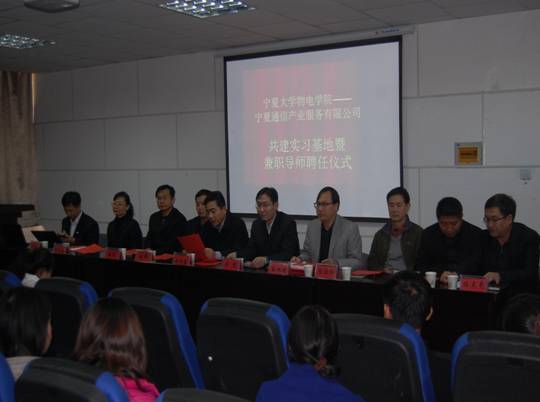 2013年11月27日下午,在宁大物电学院217学术报告厅举行bet365体育 物理电气信息学院与宁夏通信产业服务有限公司共建实习基地暨聘任专业学位硕士生导师签字仪式,会议由物电学院任克亮副院长主持,参加会议的领导有:物电...